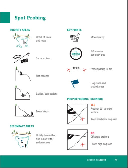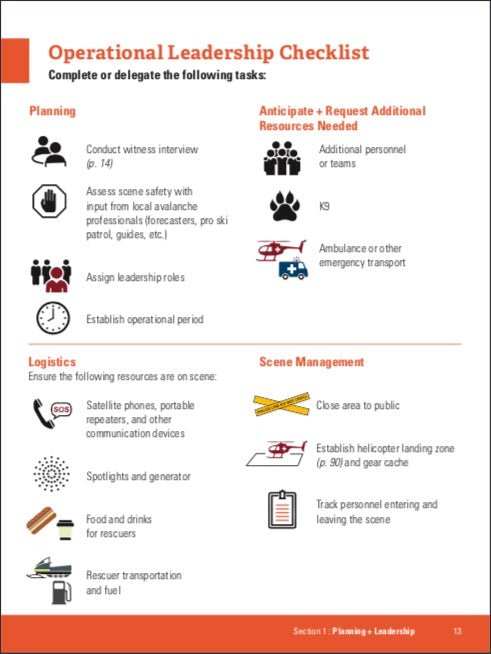 This 126 page, durable and compact backcountry field guide for professionals and recreationalists alike will help you be the best, most prepared team member possible. This easy-to-read and highly curated quick-reference tool includes leadership and risk management reviews, search strategies, probing and shoveling methods, medical protocols, patient packaging and rigging diagrams, quick reference cards and much more.