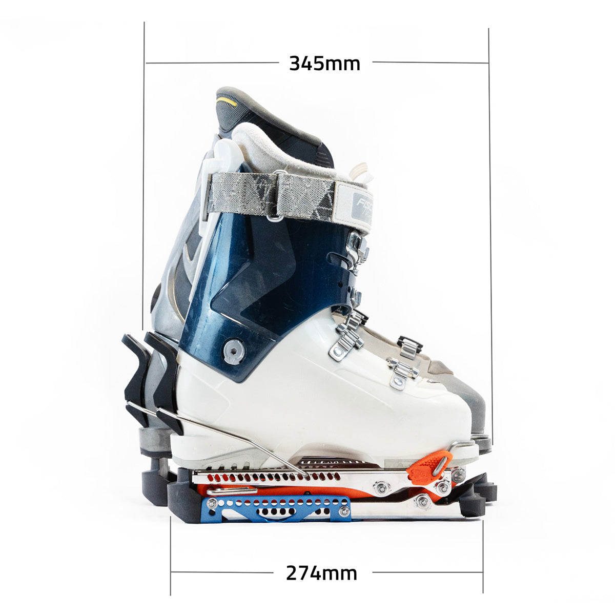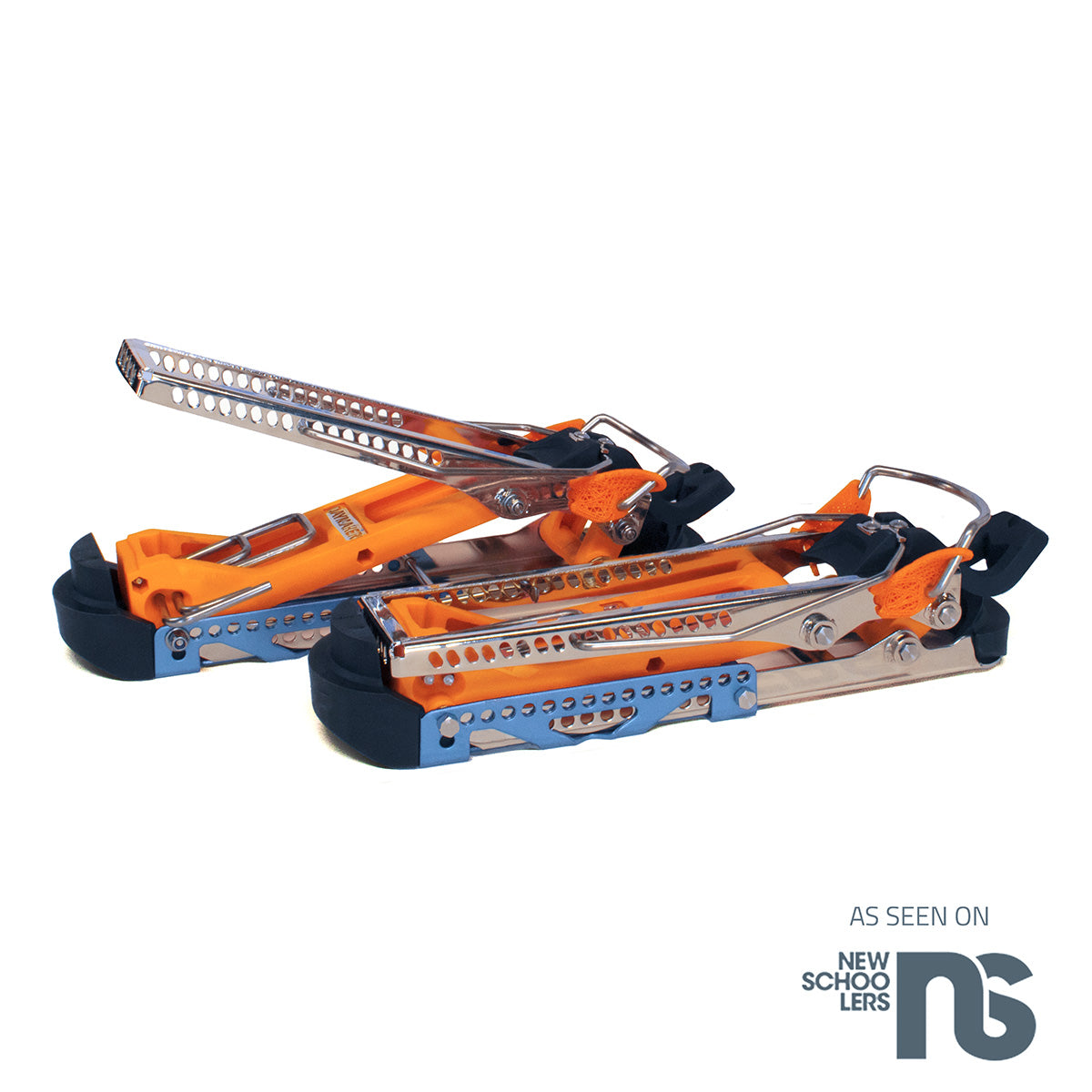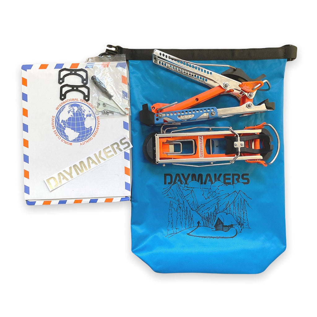 Daymakers Classic easily convert any standard downhill ski boots & bindings into a powder chasing alpine touring setup in a matter of seconds. Simply attach climbing skins to your skis, clip the Daymakers around your ski boots, step into your skis, and begin touring. Fully adjustable from 274mm to 350mm.