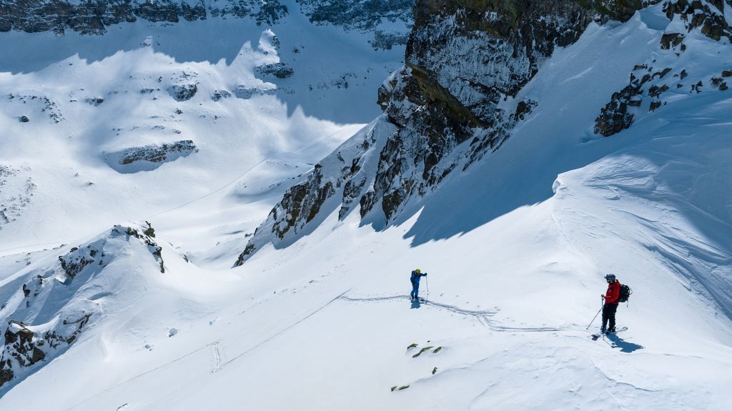The Tekdapters step directly in and out of any alpine binding, instantly transforming them into an ultra-rigid, friction-free pin interface tech binding for the ascent.